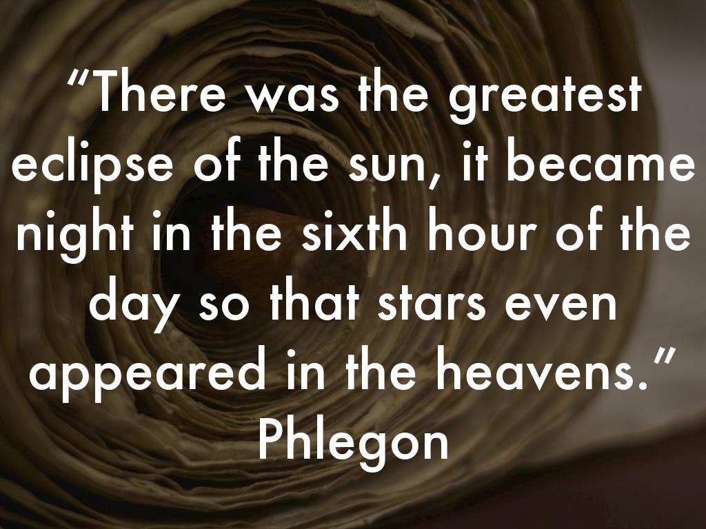 “There was the greatest eclipse of the sun, it became night in the sixth hour of the day so that stars even appeared in the heavens.”