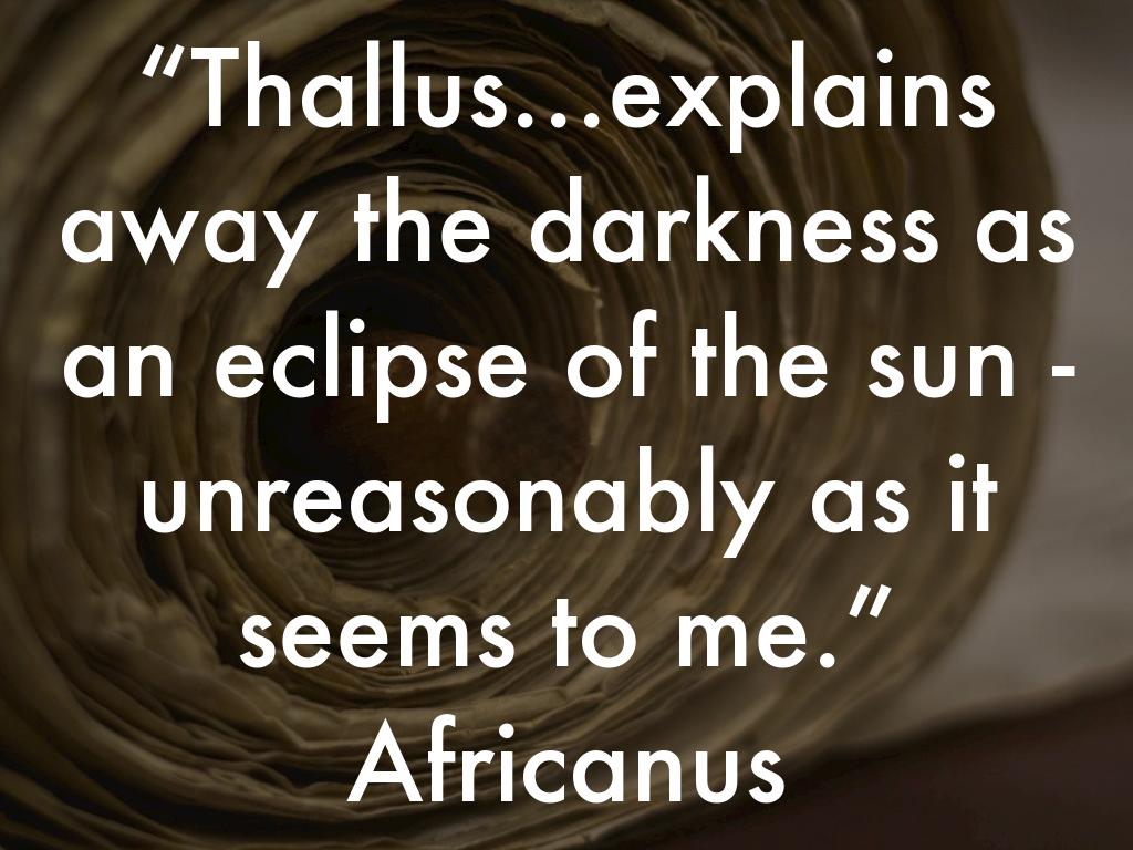“Thallus…explains away the darkness as an eclipse of the sun - unreasonably as it seems to me.”