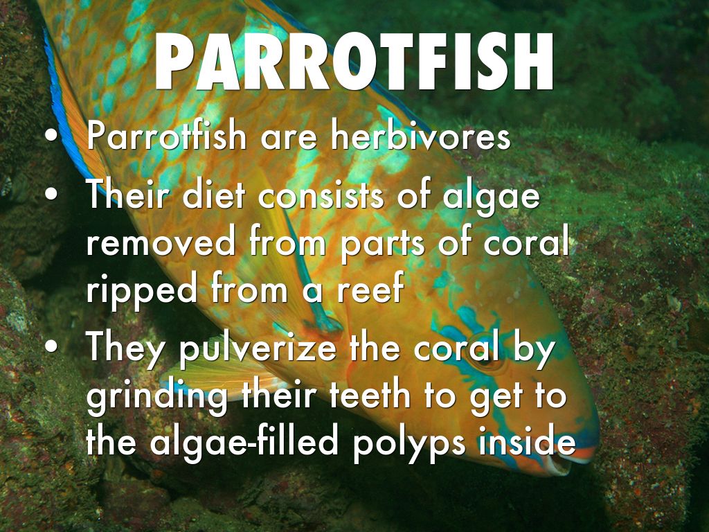 • They pulverize the coral by grinding their teeth to get to the algae-filled polyps inside