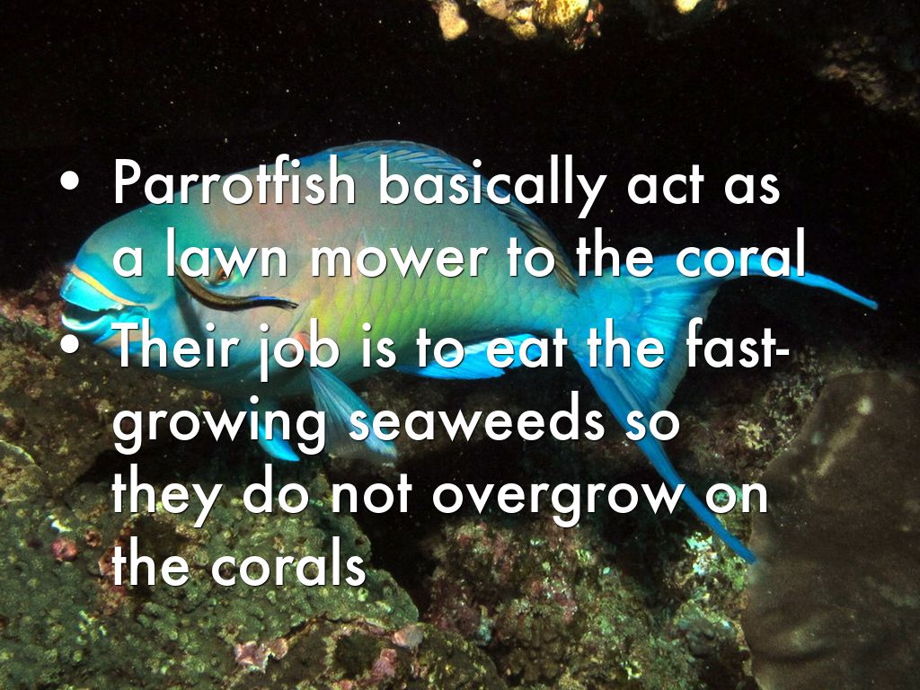 • Their job is to eat the fast-growing seaweeds so they do not overgrow on the corals