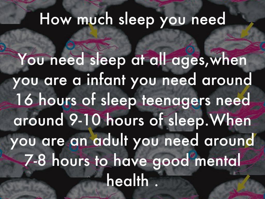 You need sleep at all ages,when you are a infant you need around 16 hours of sleep teenagers need around 9-10 hours of sleep.When you are an adult you need around 7-8 hours to have good mental health .
