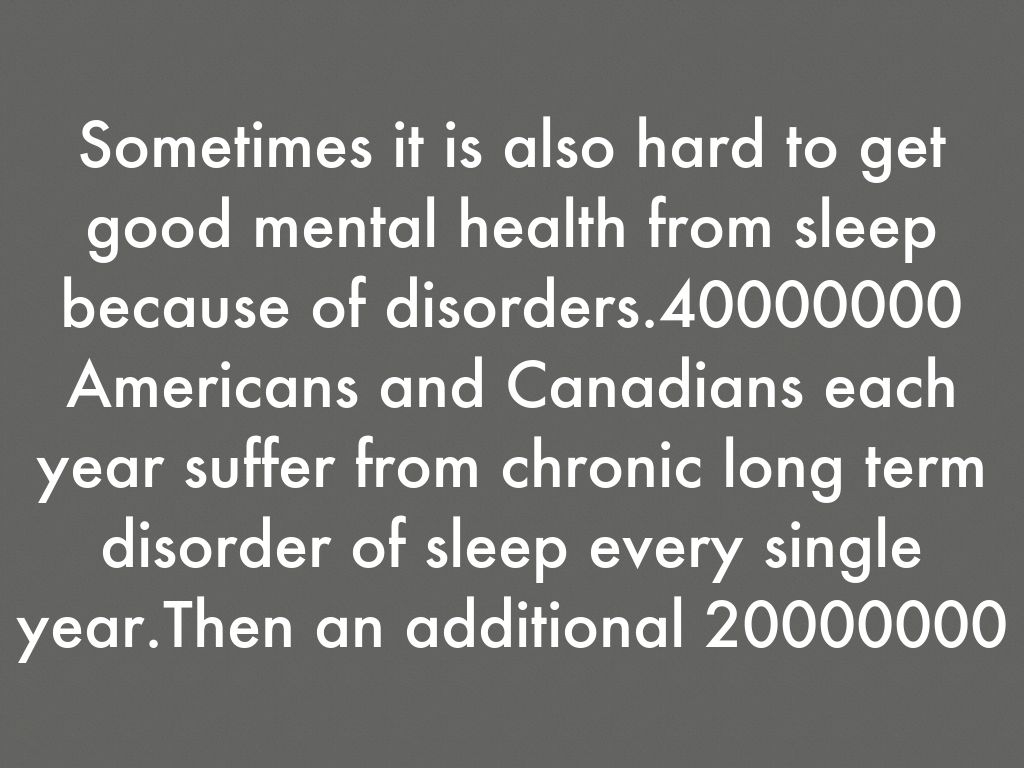 Sometimes it is also hard to get good mental health from sleep because of disorders.40000000 Americans and Canadians each year suffer from chronic long term disorder of sleep every single year.Then an additional 20000000