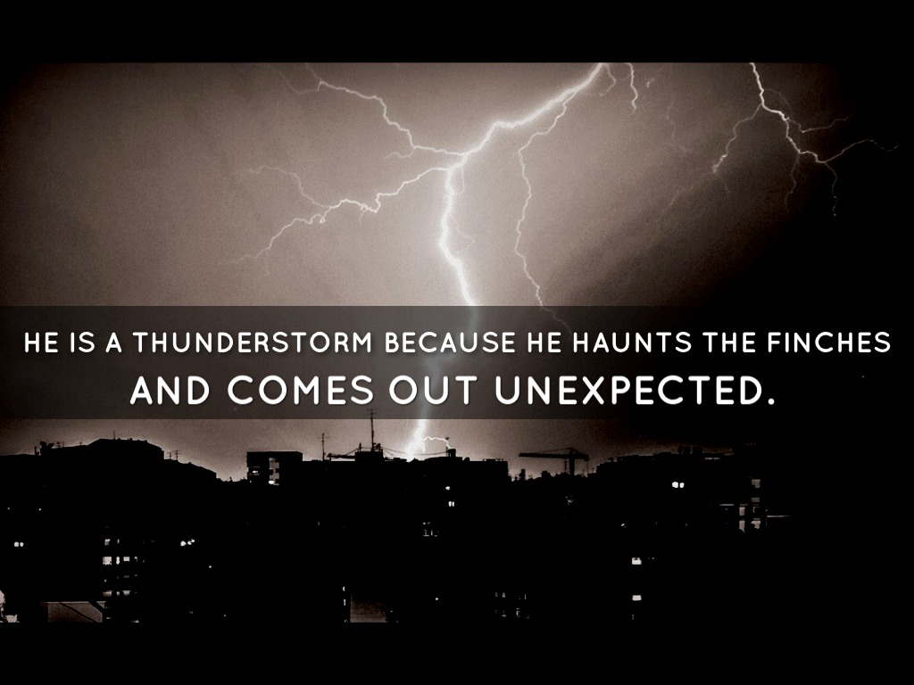HE IS A THUNDERSTORM BECAUSE HE HAUNTS THE FINCHES