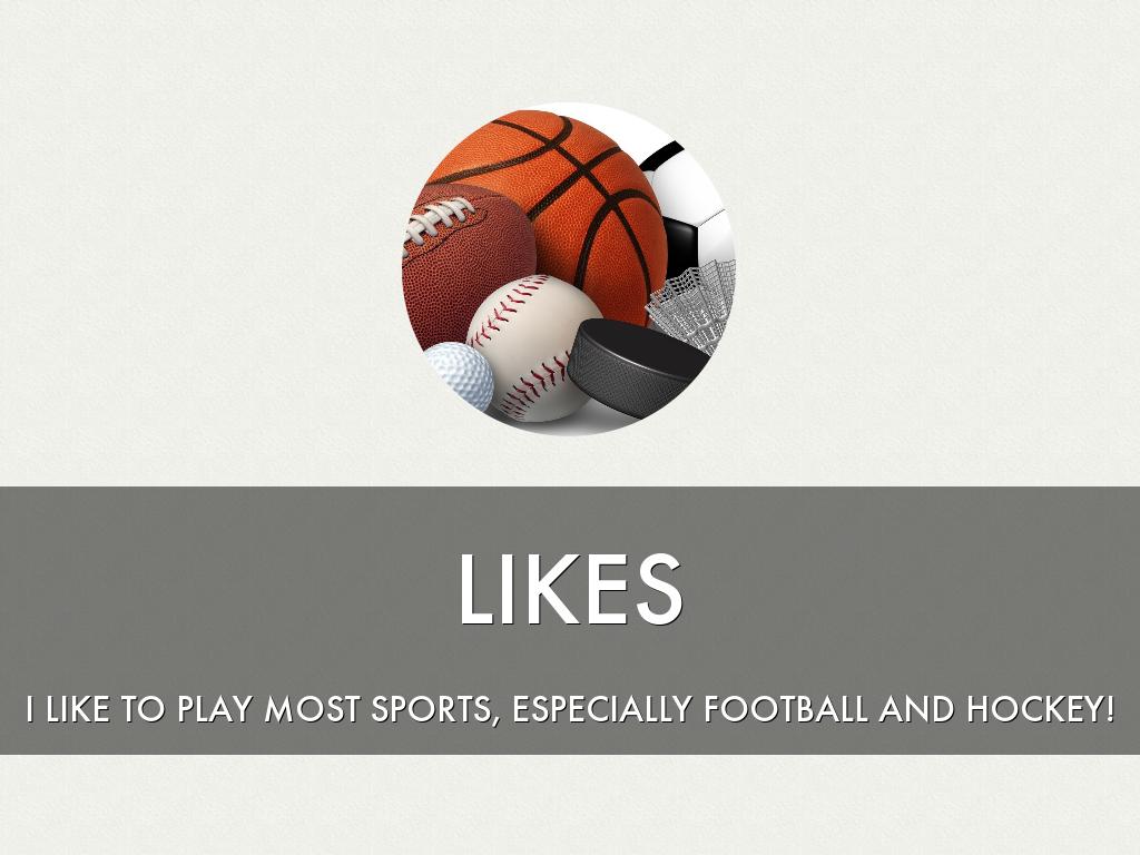 I LIKE TO PLAY MOST SPORTS, ESPECIALLY FOOTBALL AND HOCKEY!