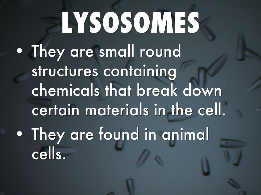 They are small round structures containing chemicals that break down certain materials in the cell.