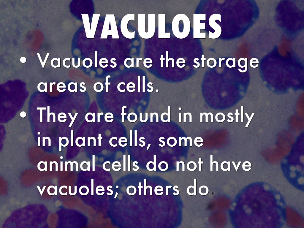 They are found in mostly in plant cells, some animal cells do not have vacuoles; others do