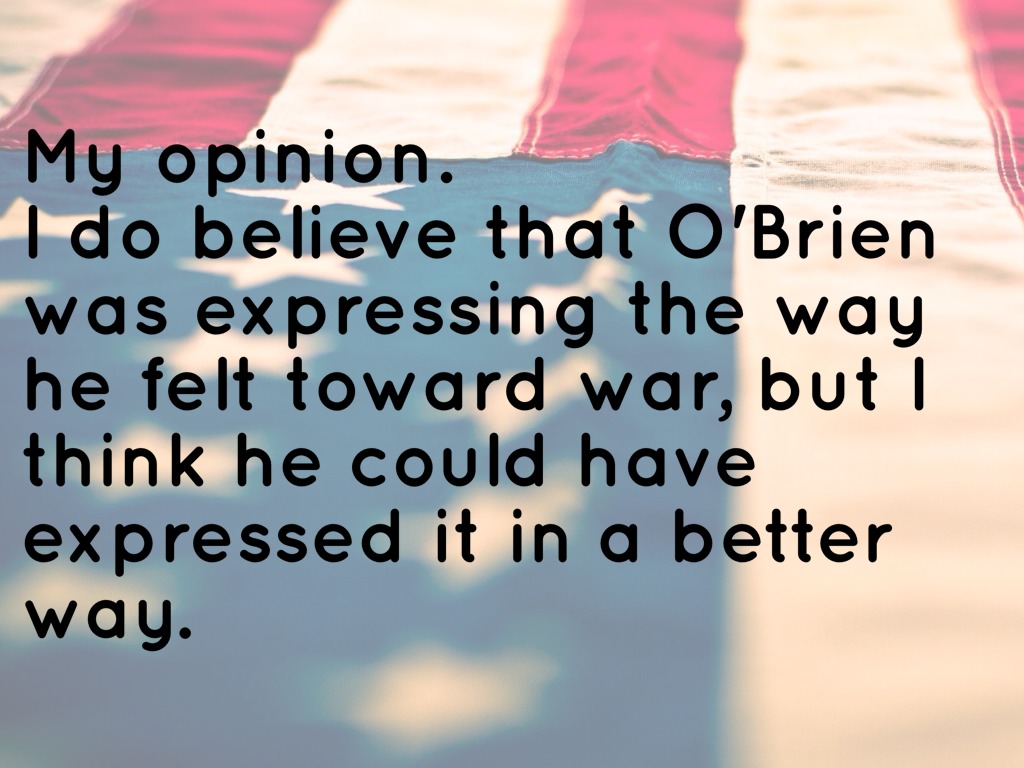 I do believe that O'Brien was expressing the way he felt toward war, but I think he could have expressed it in a better way.