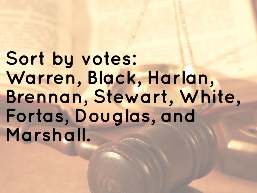 Warren, Black, Harlan, Brennan, Stewart, White, Fortas, Douglas, and Marshall.
