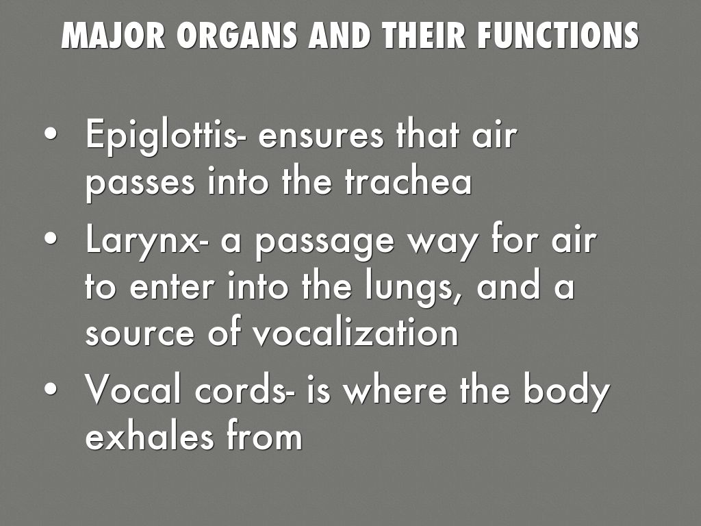 The circulatory and respiratory work together to circulate blood and oxygen throughout the body. Air moves in and out of the lungs through the trachea, bronchi, and bronchioles. Blood moves in and out of the lungs through the pulmonary arteries and veins that connect to the heart.