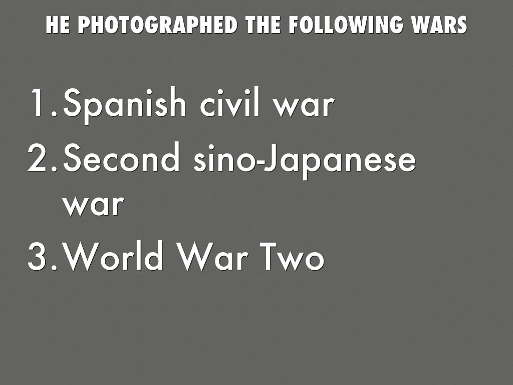 HE PHOTOGRAPHED THE FOLLOWING WARS