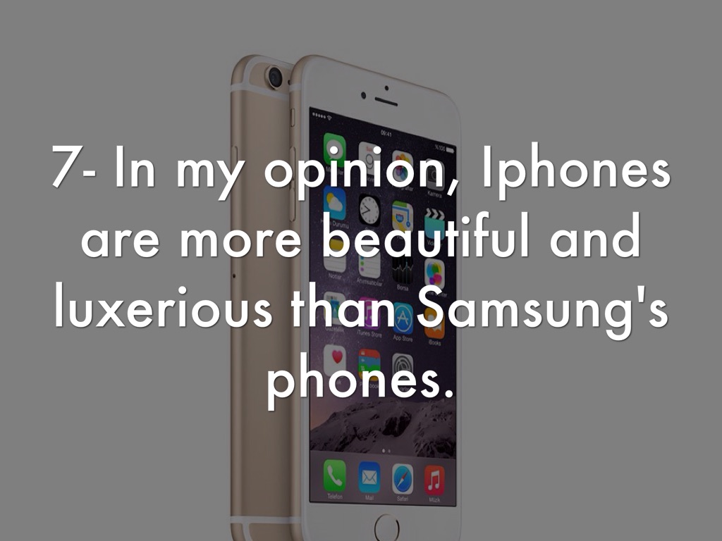 7- In my opinion, Iphones are more beautiful and luxerious than Samsung's phones.