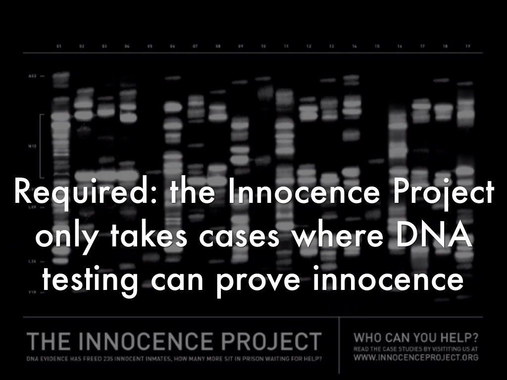 Required: the Innocence Project only takes cases where DNA testing can prove innocence