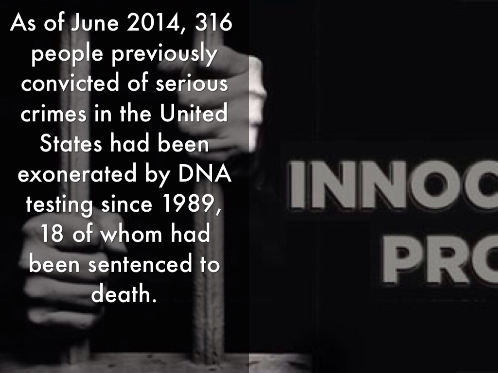 As of June 2014, 316 people previously convicted of serious crimes in the United States had been exonerated by DNA testing since 1989, 18 of whom had been sentenced to death.