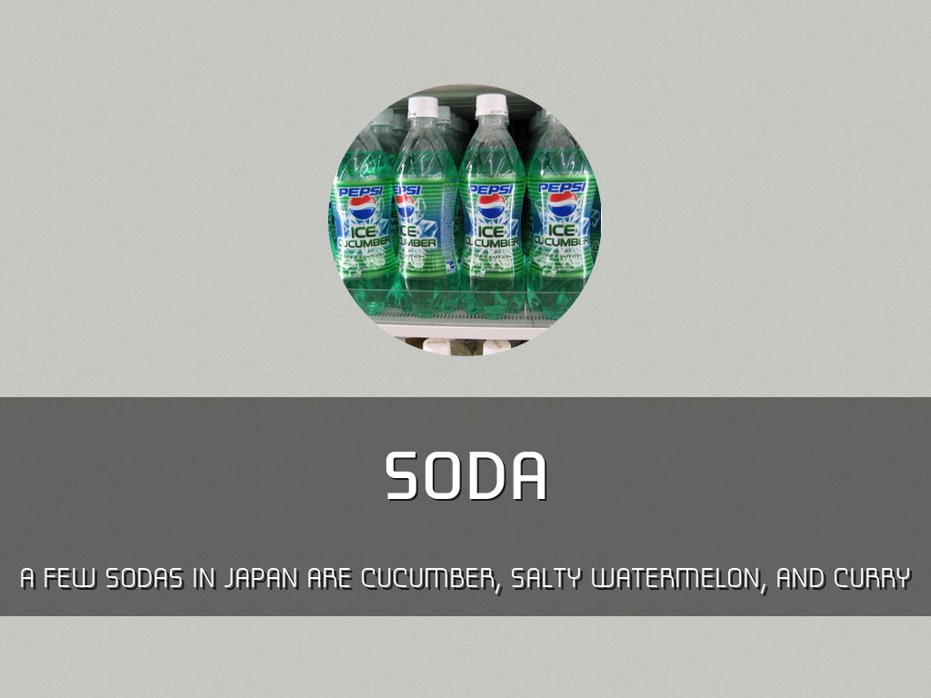 A FEW SODAS IN JAPAN ARE CUCUMBER, SALTY WATERMELON, AND CURRY