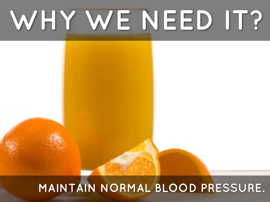 MAINTAIN NORMAL BLOOD PRESSURE.