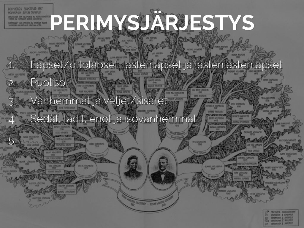 • Rintaperilliset: vainajan lapset ja lapsenlapset
