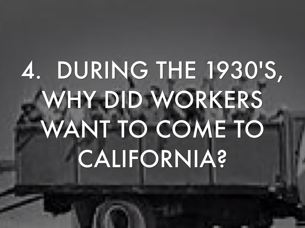 4. DURING THE 1930'S, WHY DID WORKERS WANT TO COME TO CALIFORNIA?