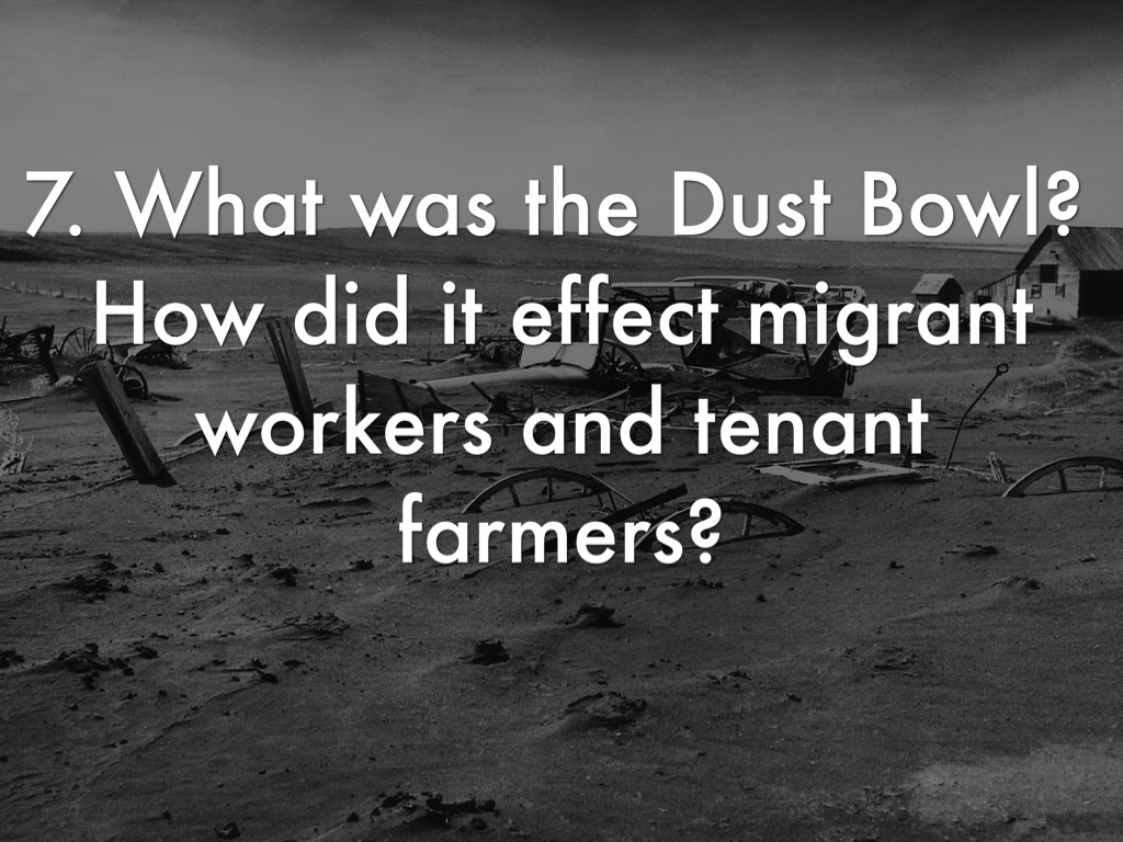 7. What was the Dust Bowl? How did it effect migrant workers and tenant farmers?