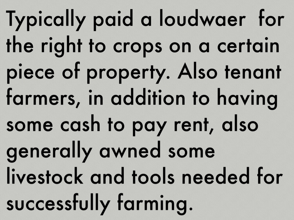 Typically paid a loudwaer for the right to crops on a certain piece of property. Also tenant farmers, in addition to having some cash to pay rent, also generally awned some livestock and tools needed for successfully farming.