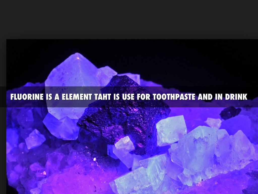 FLUORINE IS A ELEMENT TAHT IS USE FOR TOOTHPASTE AND IN DRINK