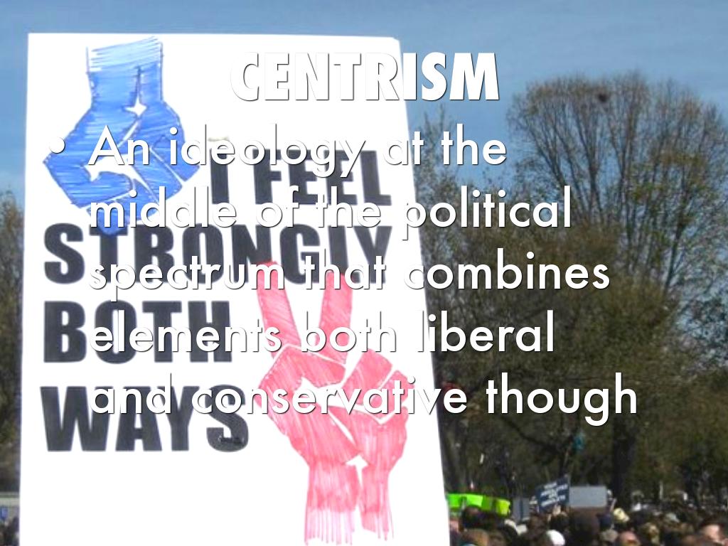 - An ideology at the middle of the political spectrum that combines elements both liberal and conservative though