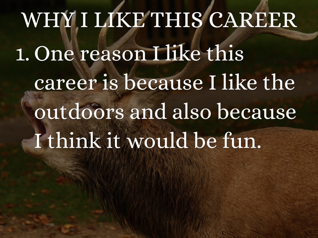 One reason I like this career is because I like the outdoors and also because I think it would be fun.