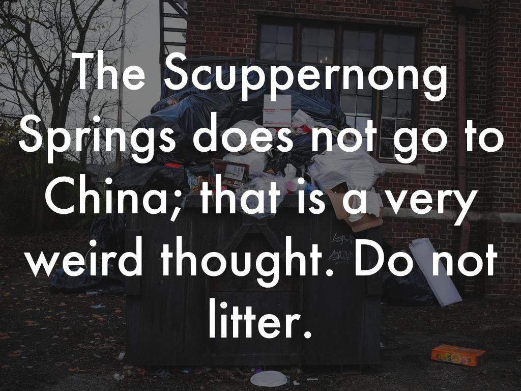 The Scuppernong Springs does not go to China; that is a very weird thought. Do not litter.