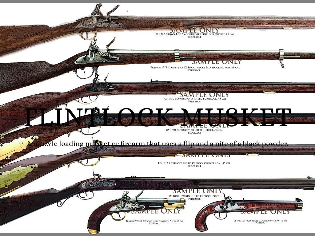 A muzzle loading musket or firearm that uses a flip and a nite of a black powder.