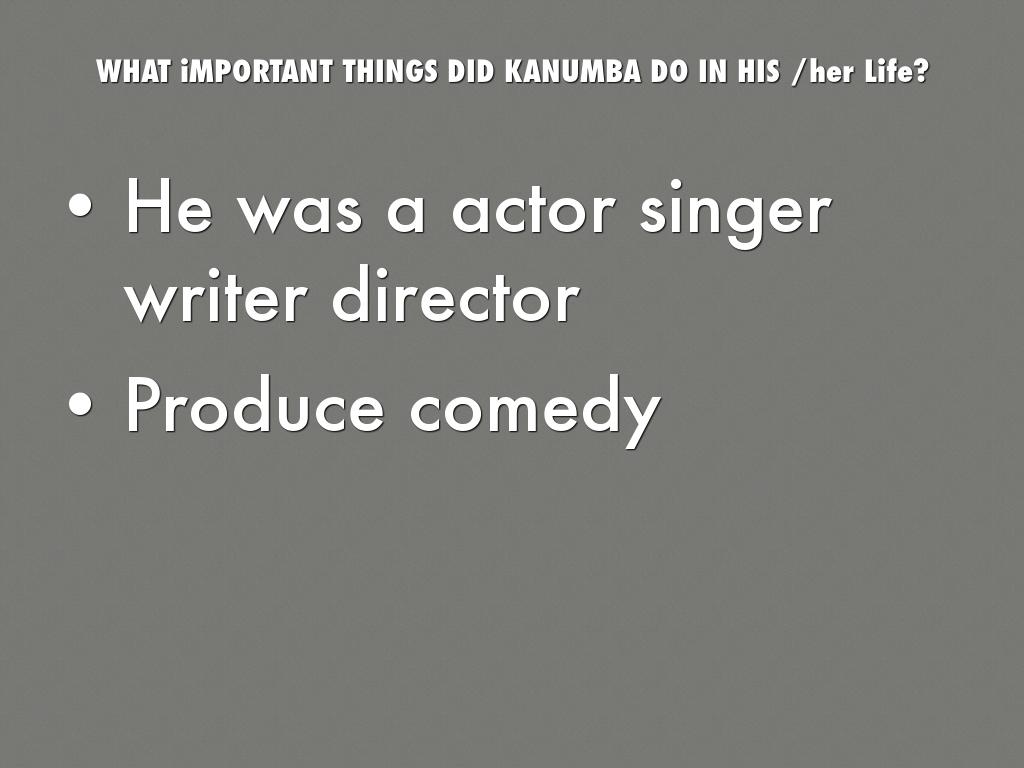 WHAT iMPORTANT THINGS DID KANUMBA DO IN HIS /her Life?