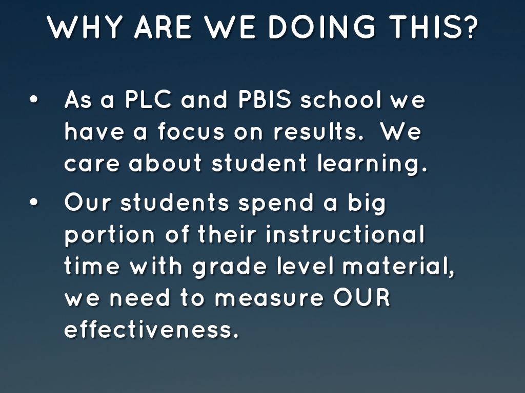 • As a PLC and PBIS school we have a focus on results. We care about student learning.