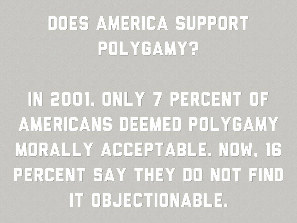 In 2001, only 7 percent of Americans deemed polygamy morally acceptable. Now, 16 percent say they do not find it objectionable.