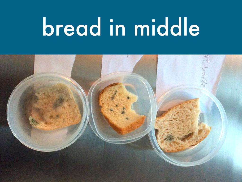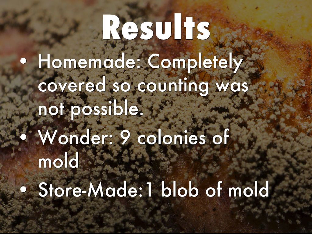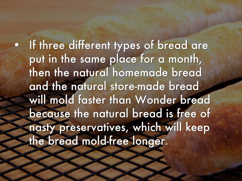 If three different types of bread are put in the same place for a month, then the natural homemade bread and the natural store-made bread will mold faster than Wonder bread because the natural bread is free of nasty preservatives, which will keep the bread mold-free longer.