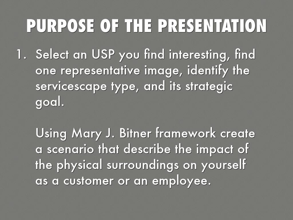 - Select an USP you find interesting, find one representative image, identify the servicescape type, and its strategic goal.