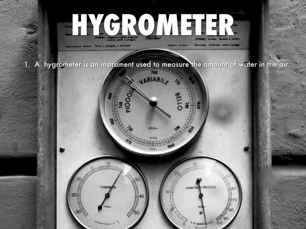 • A hygrometer is an instrument used to measure the amount of water in the air