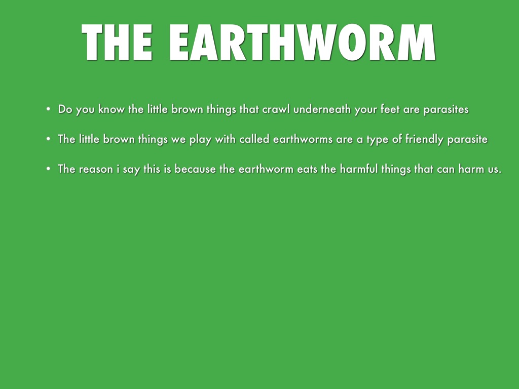 The reason i say this is because the earthworm eats the harmful things that can harm us.