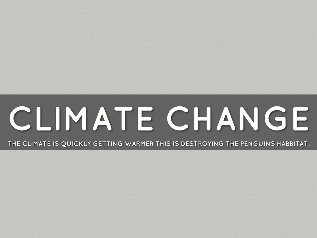 THE CLIMATE IS QUICKLY GETTING WARMER THIS IS DESTROYING THE PENGUINS HABBITAT.