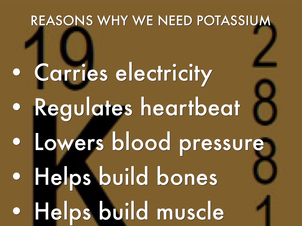 HERE I AM GOING TO BE TELLING YOU ABOUT POTASSIUM AND WHY WE NEED IT