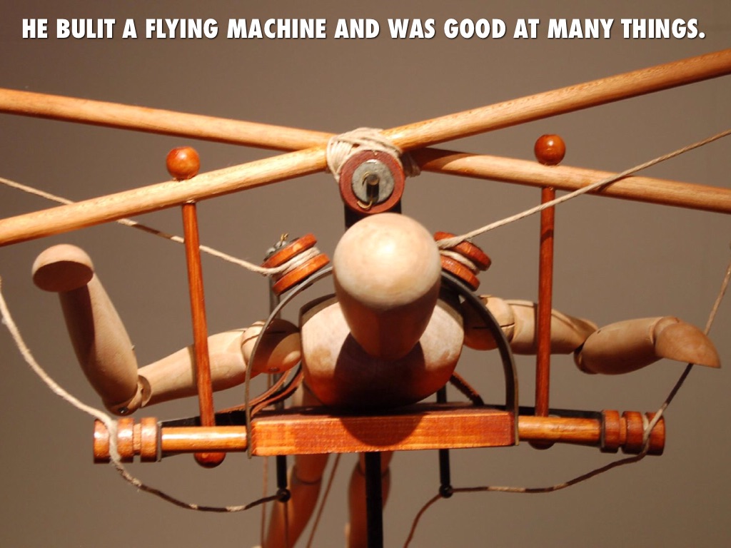 HE BULIT A FLYING MACHINE AND WAS GOOD AT MANY THINGS.