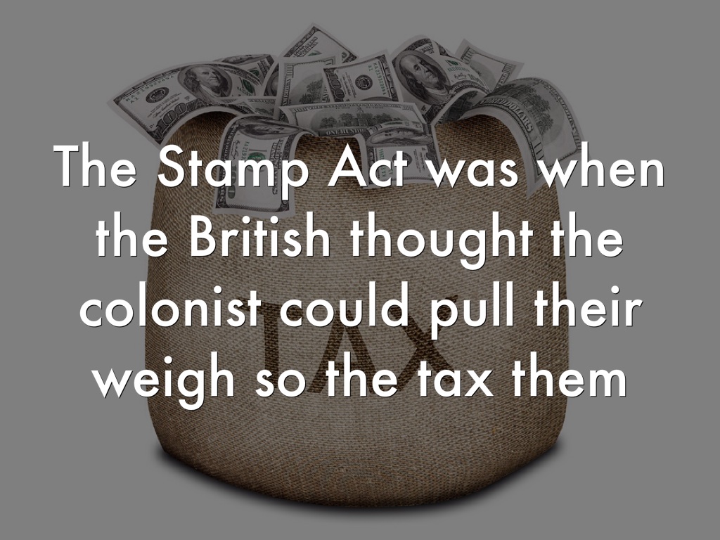 The Stamp Act was when the British thought the colonist could pull their weigh so the tax them