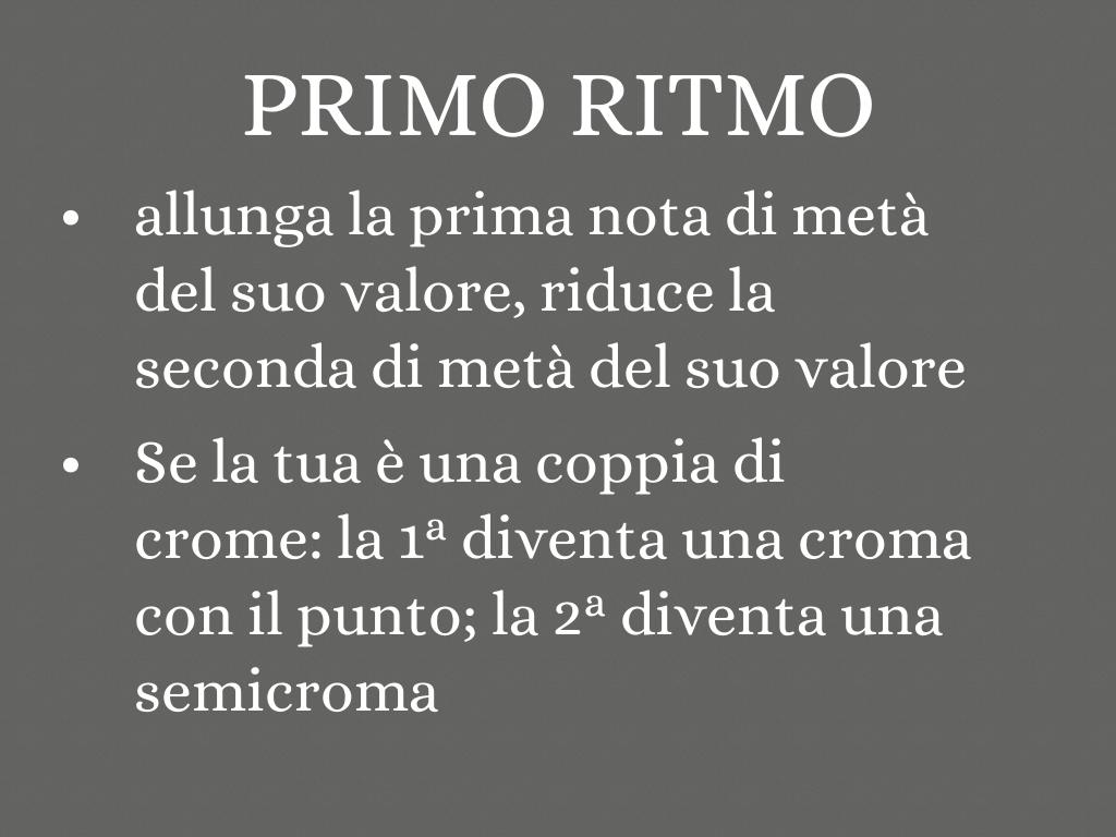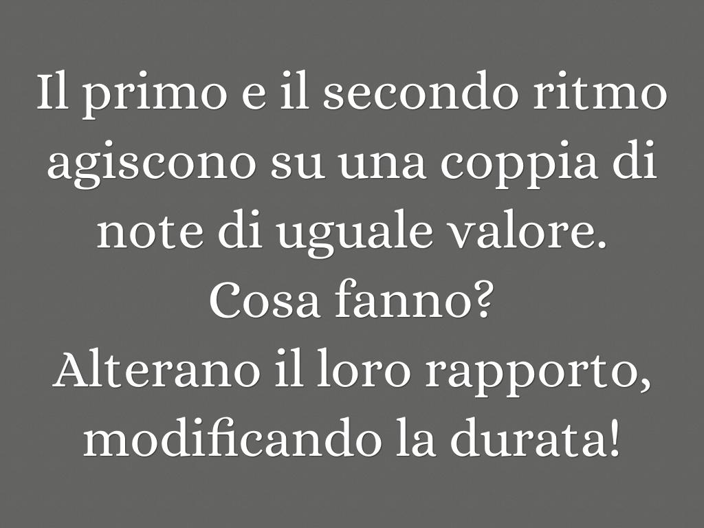 Il primo e il secondo ritmo agiscono su una coppia di note di uguale valore.