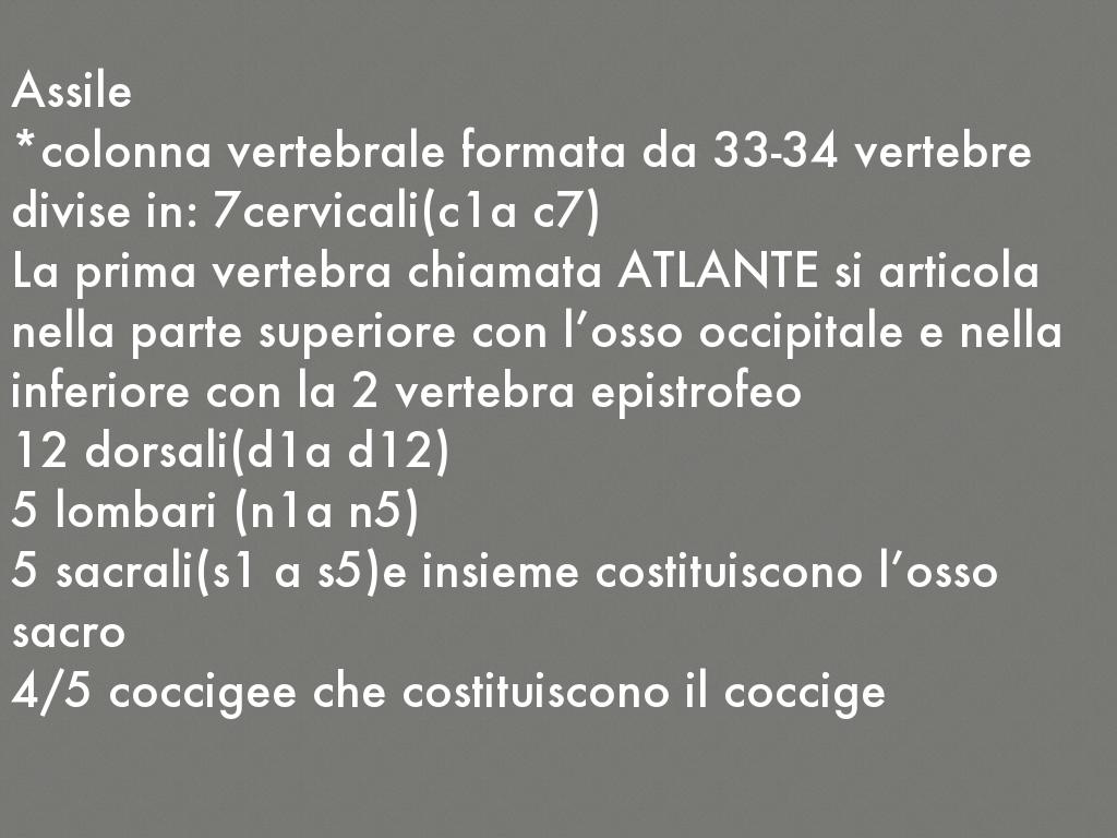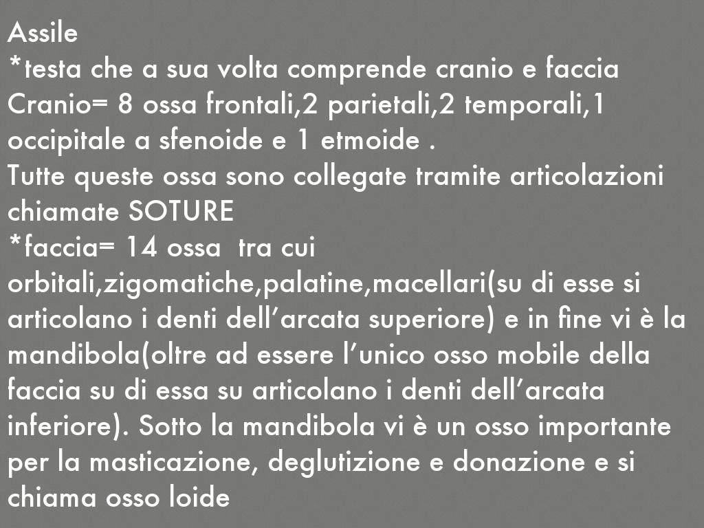 • Assile - testa,colonna vertebrale e gabbia toracica