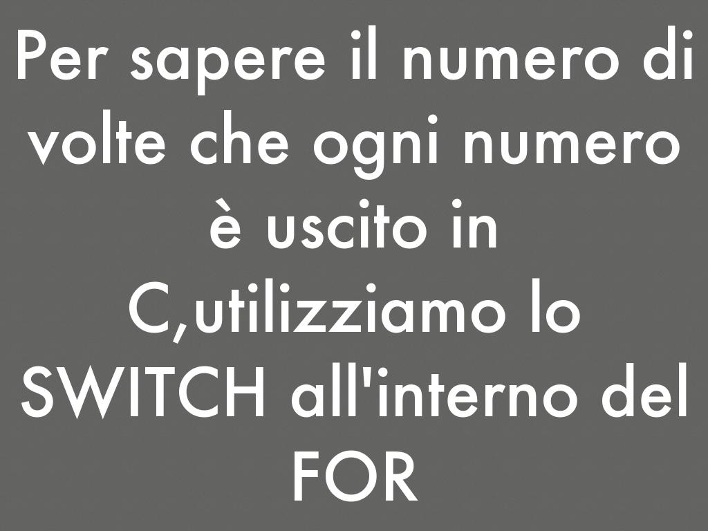 Per sapere il numero di volte che ogni numero è uscito in C,utilizziamo lo SWITCH all'interno del FOR