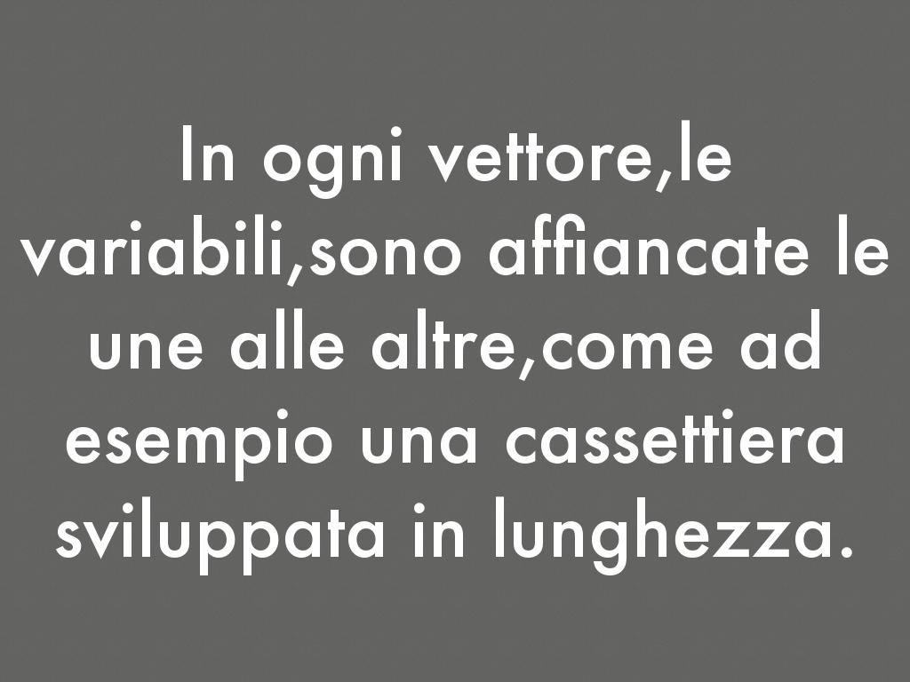 In ogni vettore,le variabili,sono affiancate le une alle altre,come ad esempio una cassettiera sviluppata in lunghezza.