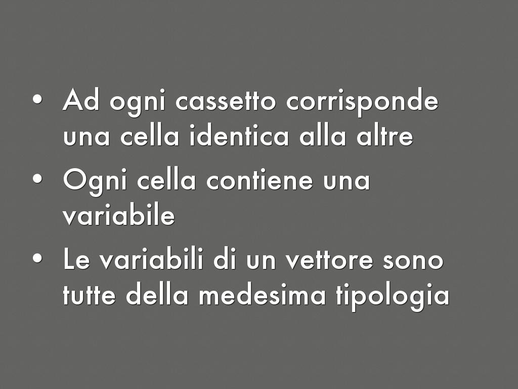 - Ad ogni cassetto corrisponde una cella identica alla altre
