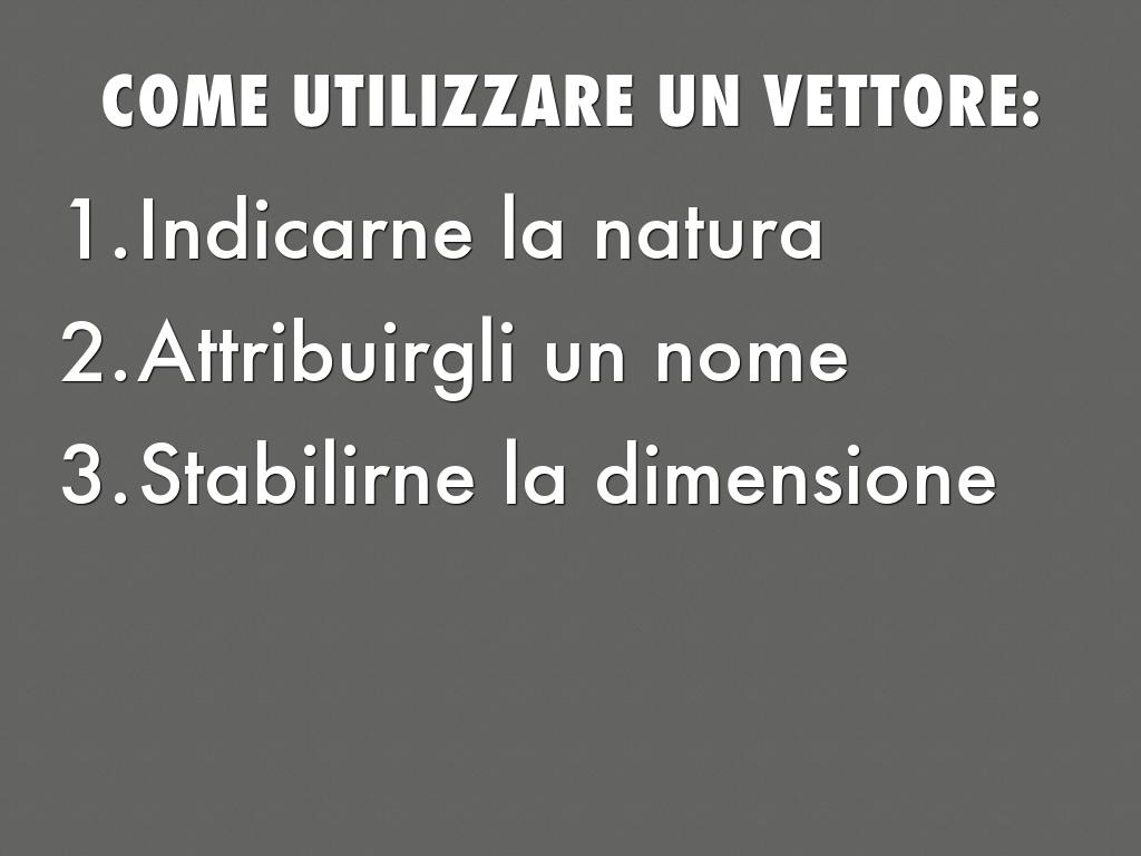 - Le variabili di un vettore sono tutte della medesima tipologia