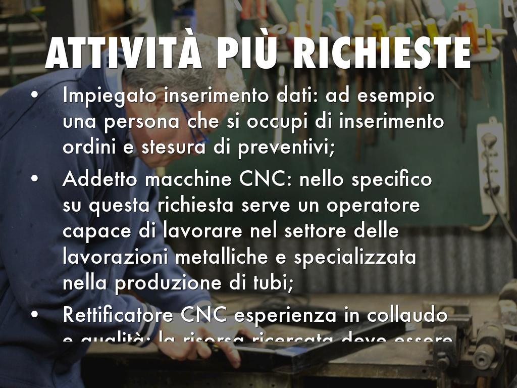 Addetto macchine CNC: nello specifico su questa richiesta serve un operatore capace di lavorare nel settore delle lavorazioni metalliche e specializzata nella produzione di tubi;