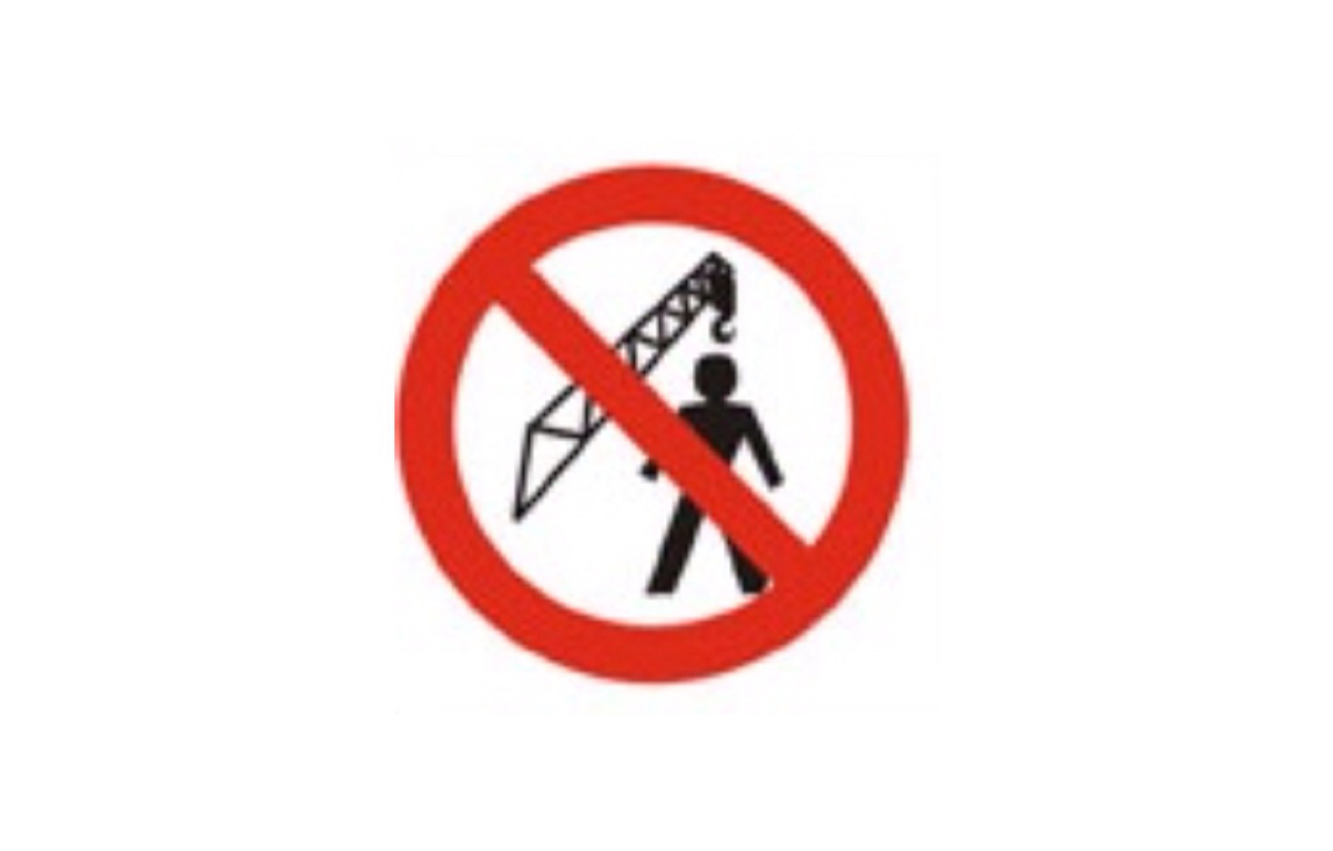 Le manovre per il sollevamento dei carichi pesanti devono essere disposte in modo da evitare il passaggio dei carichi sospesi sopra i lavoratori ed i luoghi per i quali l'eventuale caduta dei carichi può costituire pericolo. Questo cartello è normalmente esposto nelle aree di montaggio di elementi prefabbricati e in corrispondenza dei posti di sollevamento dei materiali.