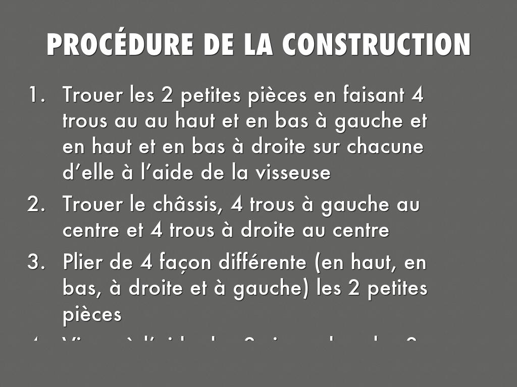 PROCÉDURE DE LA CONSTRUCTION