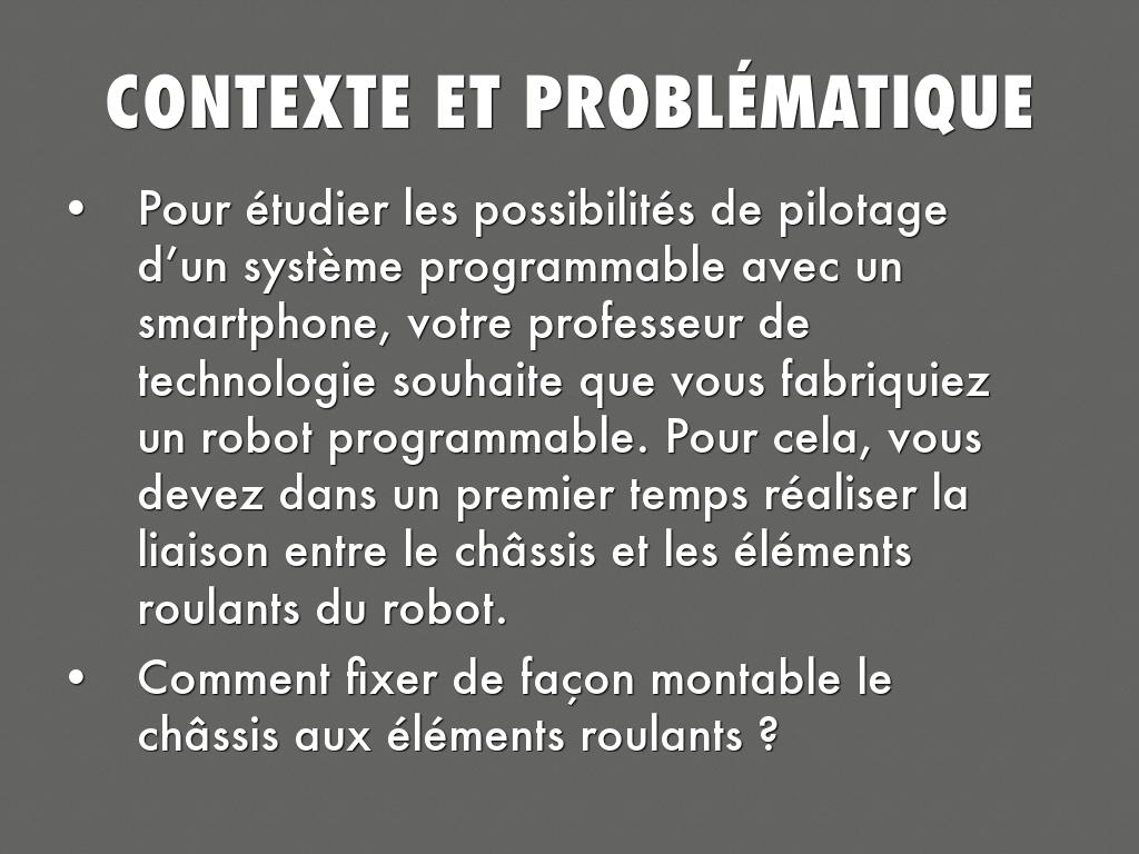 - Pour étudier les possibilités de pilotage d’un système programmable avec un smartphone, votre professeur de technologie souhaite que vous fabriquiez un robot programmable. Pour cela, vous devez dans un premier temps réaliser la liaison entre le châssis et les éléments roulants du robot.