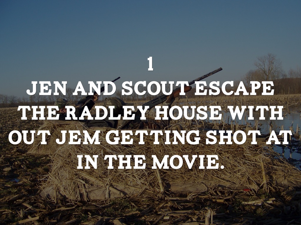 Jen and scout escape the Radley house with out Jem getting shot at in the movie.